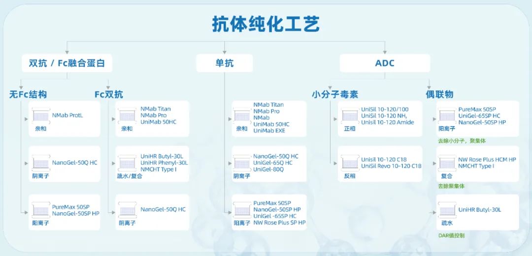 随着抗体药物表达量持续提升,下游纯化面临更高要求的挑战。纳微科技凭借多年研发技术积累和下游纯化经验推出高效抗体纯化解决方案:
