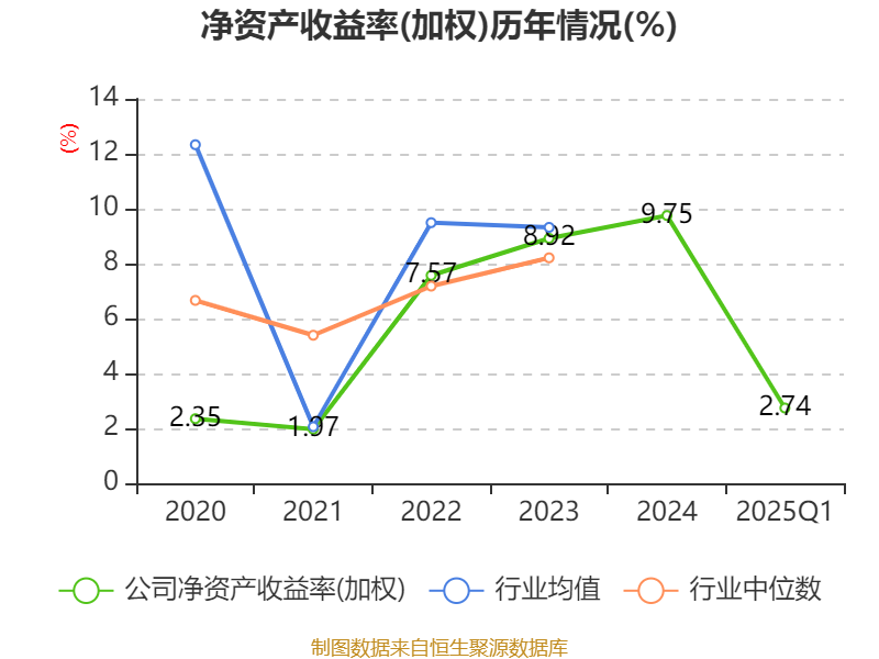 盈利能力方面, 2025年一季度公司加权平均净资产收益率为2.74%,同比上升0.21个百分点。公司2025年第一季度投入资本回报率为1.99%,较上年同期上升0.02个百分点。